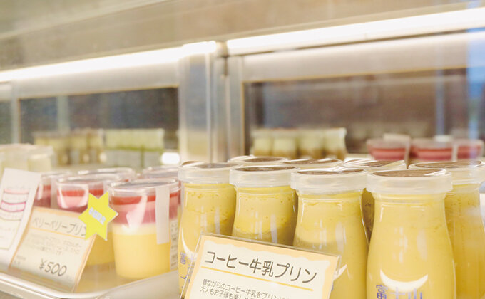 『フジノデリス』では、牛乳・卵・砂糖・焼き方の4つにこだわってプリンを製造しています。1本で3層の食感が楽しめる新感覚のプリンで、常時6種類に加え、季節限定のプリンも用意されています。