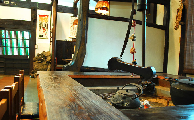 落ち着いた和の空間は、築200年以上たった「蜘蛛梁造り(くもばりづくり)」の建物です。