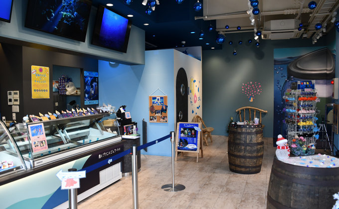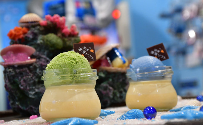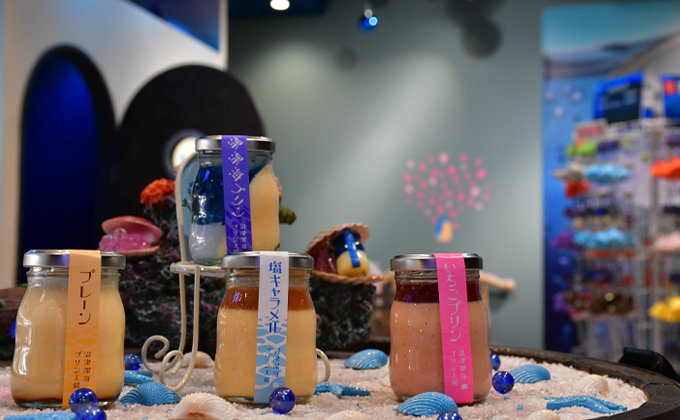 まるで深海にいるような雰囲気の「深海カフェ2500」、いくつかのトリックアートが楽しめる「深海と青のミュージアム」があり、今までにない体験型のプリン専門店です。