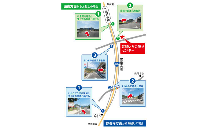 - 新東名高速道路「長泉沼津IC」より伊豆縦貫道・伊豆中央道(「江間料金所」下車)経由で約20~30分