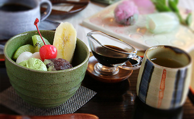 黄瀬川の畔に佇む、どこか懐かしさを感じる民家カフェ『茶まり』。一品一品にやさしさを感じる茶まり特製ランチと、手づくりにこだわった甘味を楽しむことができます。