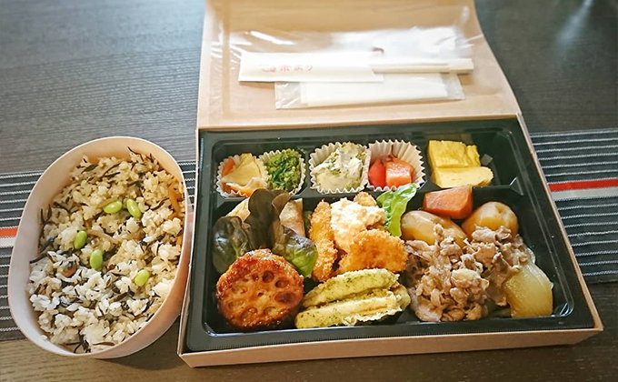 ・お子茶まりランチ 450円 ※なくなり次第終了。 ※メニューは週1回変わります。 ※お弁当のテイクアウトもあります。詳細は公式サイトをご確認ください。
