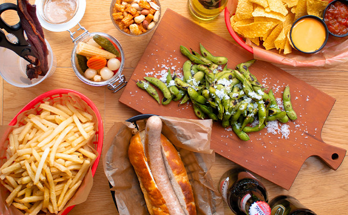 御殿場の食材をふんだんに使用したホットドッグ、静岡県産茶葉を使用した緑茶やほうじ茶、地ビールなど、地元の味にこだわったフード&ドリンクが種類豊富に楽しめます。