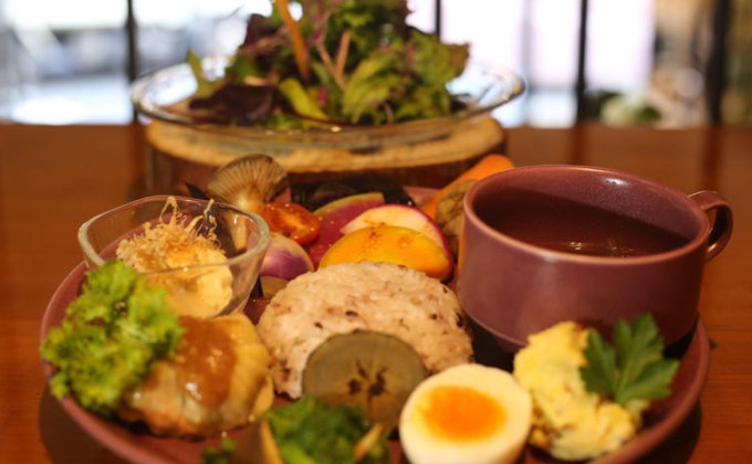 1階は旬の野菜、調味料、加工品など約300種類の商品が並びます。また2階は、お野菜はもちろん、お魚やお肉料理もいただくことができます。