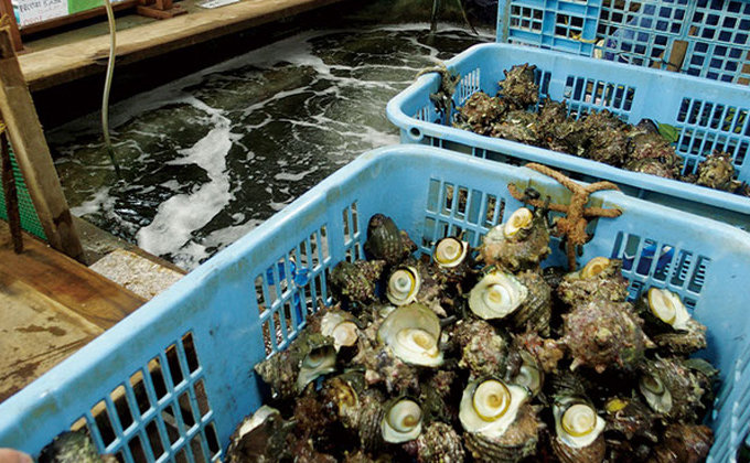 新鮮でより良いものをより安く提供している卸問屋です。また徒歩30秒のところには、磯料理をふんだんに食べられる民宿「さざえ荘」もあります。
