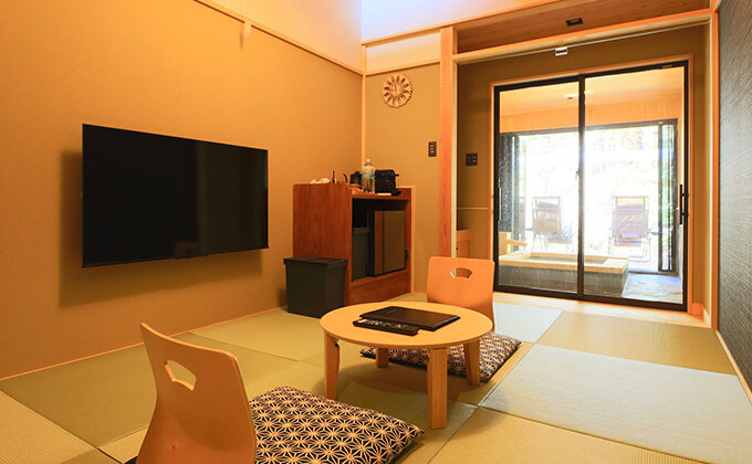 『横川温泉 湯殿 ととのゆ』では、四季折々の美しい自然を眺めながら、趣の異なる客室で源泉かけ流しの温泉をひとりじめできます。