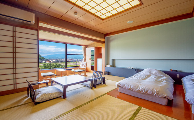 全室富士山ビュー、3つの無料貸切露天風呂など魅力が満載。伊豆の幸を楽しめる食事は、周りを気にせず朝夕ともに個室でいただけます。