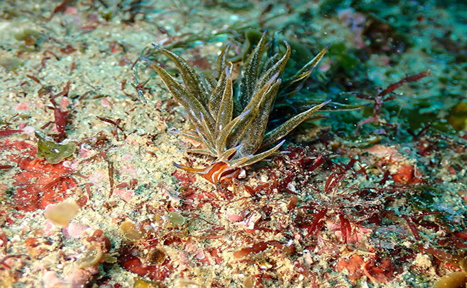 日本屈指の地形ポイントで、海の宝石とも謳われるウミウシや甲殻類などの生物を堪能できるので、フォト派ダイバーの方にもおすすめです。